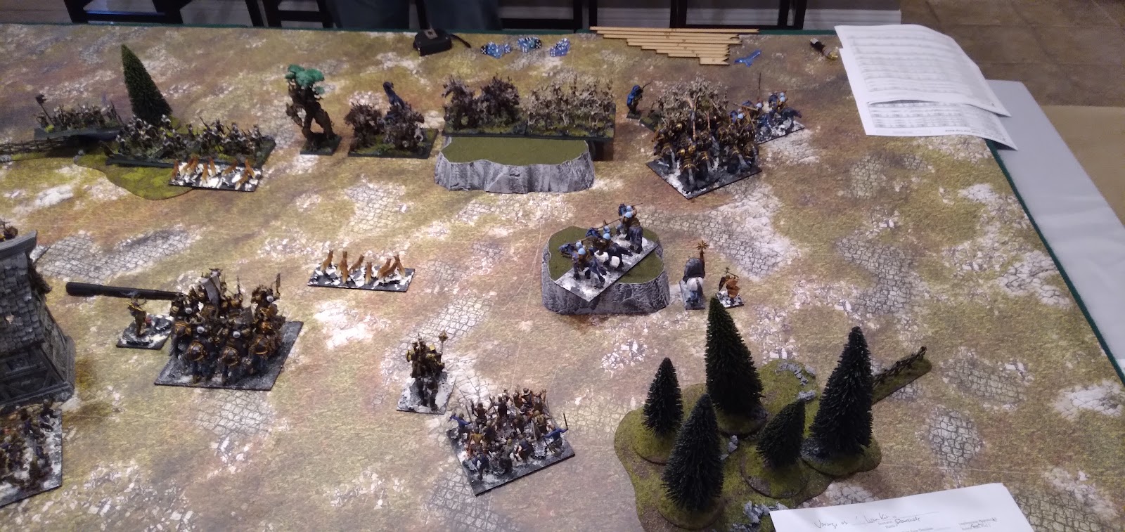 Centrally, Snow Foxes look to bait a charge out from the walking trees before them, with Kruufnir, Mounted Sons and the Thegn all looking to retaliate.