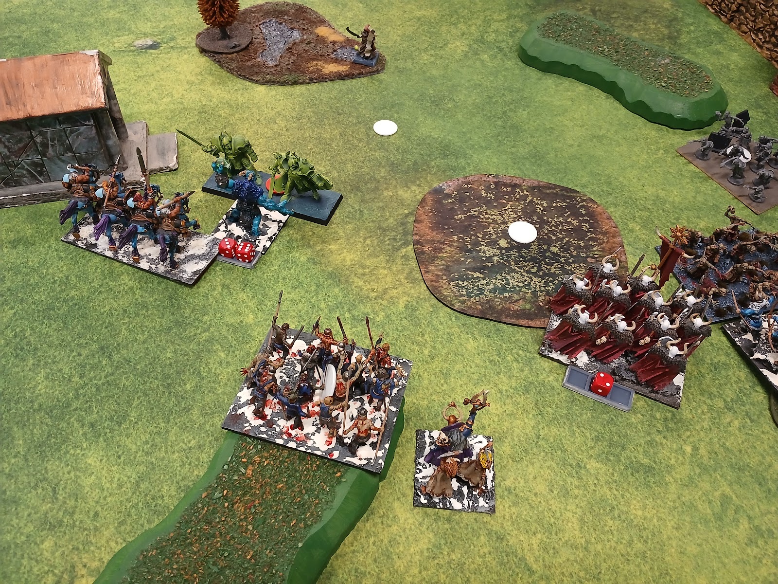 The Horsemen are gummed up by terrain. I can’t join in against the Wights too, so they nimble away, onto the hill. From here, they should find something to do next turn.